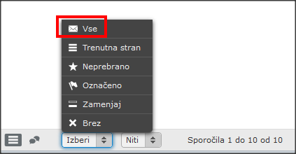 4. Nato pojdite še v mapo “Smeti” (Trash) in sporočila izbrišite še iz te mape. Če želite izbrisati vse, v spodnjem meniju izberite opcijo “Vse”, da označite vsa sporočila.