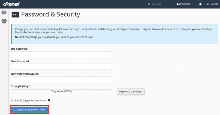 Za potrditev zamenjave gesla pritisnite gumb “Change your password now!”.