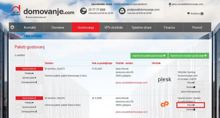 Če ste pozabili geslo za dostop si ga lahko ponastavite na spodnji povezavi: https://www.domovanje.com/portal/pozabljeno-geslo2. V uporabniških straneh izberite zavihek “Gostovanja” ter se s pritiskom na gumb “Prijava” vpišite v cPanel nadzorno ploščo.