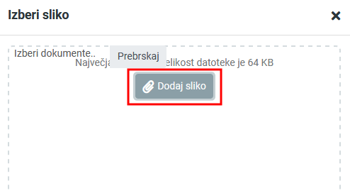 5. Kliknite na gumb “Dodaj sliko” in jo poiščite na vašem računalniku.