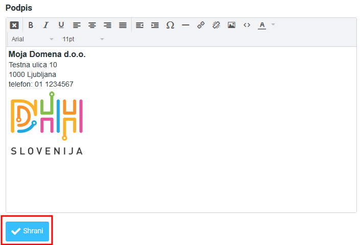 6. Ko je slika dodana v podpis, kliknite še gumb “Shrani”.